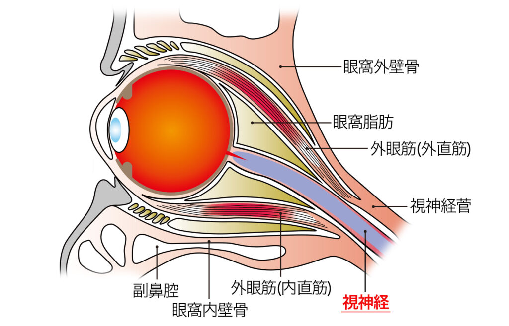 その視神経の断面は下図のようになっていて、06クモ膜下腔は脳脊髄液が満たされています。