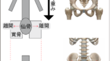 骨盤は、寛骨2つと仙骨で構成され、寛骨の間に仙骨が挟まっています。
